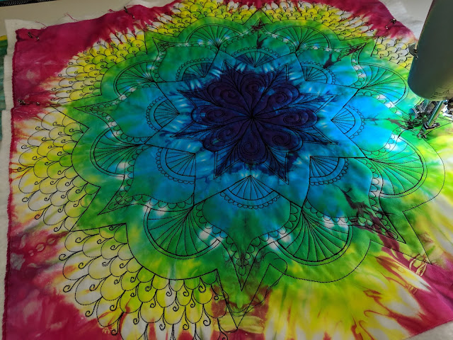 When it rains, it pours! Another storm rolled into San Jose, bringing more rain and a brand new hand dyed and quilted mandala! I've come to enjoy these rainy days, as I am happy to ride out the storm from the comfort of my studio.