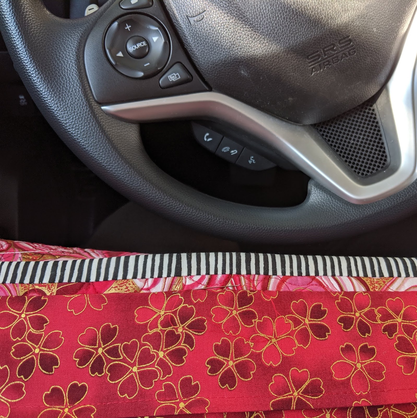 Diablo Valley Quilters in Danville, CA. My trip coincided with PG&E's Planned Power Outages which included Danville, along with most of the Bay Area in the impacted areas. So on the drive up, I brainstormed alternatives in the event the power turned off during my lecture/trunk show. I lucked out in beating some of the bay area traffic and hoped to visit the Danville Local Quilt shop, but discovered they had closed in anticipation of the power outage. Luckily I found other local shopping to occupy myself until meeting up with several guild reps at Piatti's Restaurant. We dined outside on their lovely patio, which included almost a dozen wasps/bees who were very interested in our meals. Piatti's prints up special menus to welcome group reservations--what a nice touch!