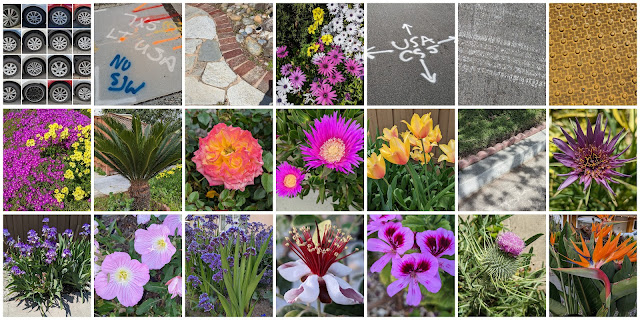 Regardless of location, I noticed a few themes to my I Spy inspirational photos. Nature was by far the biggest source of inspiration, especially in the form of flowers and plants. Mother Nature provides such rich design inspiration in the form of colors, lines, patterns, and colors! Having this year's 100 Day Project dates coincide with our Spring season provided plenty of new discoveries as the landscape shifted with new daily plant growth and lots of brilliant blooms!
